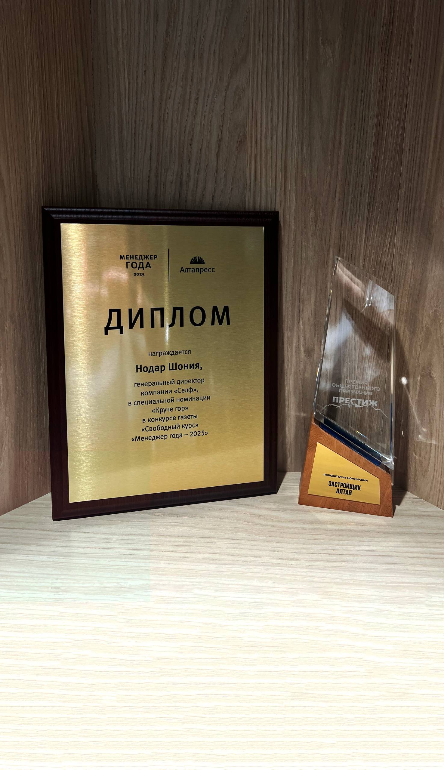 Компания «Селфстроит» получила специальный диплом в рамках премии «Менеджер года 2025». Уже более 20 лет редакция газеты «Свободный курс» и портал altapress.ru с помощью бизнес-сообщества выбирают тех, чей вклад в предпринимательство края был особенно значимым в уходящем году. В 2025 году в ходе экспертных советов представители отраслей определили победителей в разных номинациях. «Селфстроит» удостоили специальной номинации «Круче гор» за успешную реализацию нового масштабного проекта в Республике Алтай «Город гор».