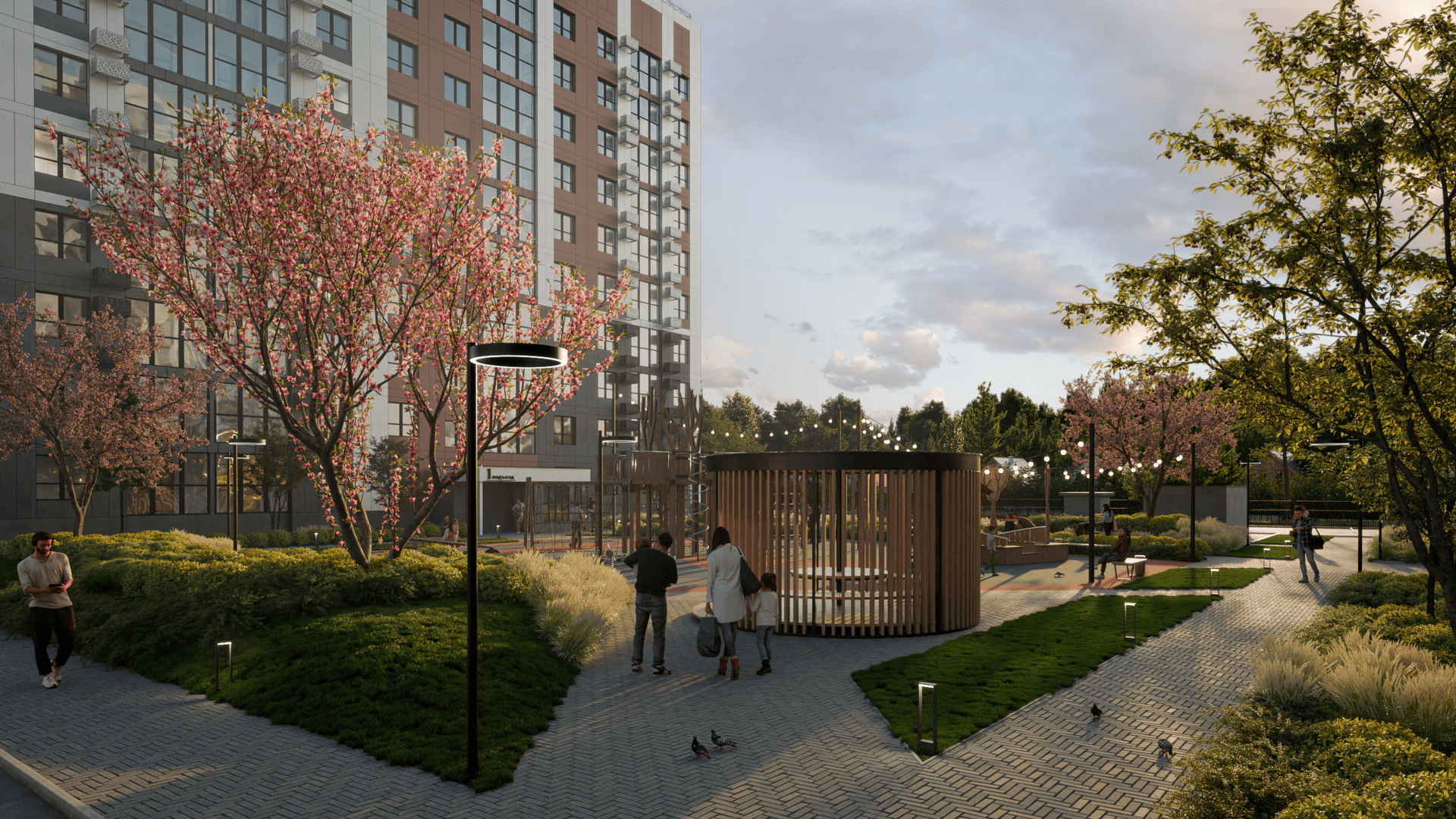Дом «1824» – это уютная придомовая территория с продуманной инфраструктурой. Здесь ровные удобные дорожки соседствуют с цветниками, предусмотрены места для прогулок с колясками, организована доступная среда для людей с ограниченными возможностями. На закрытой территории расположены игровые зоны, детские и спортивные площадки, удобные велопарковки.