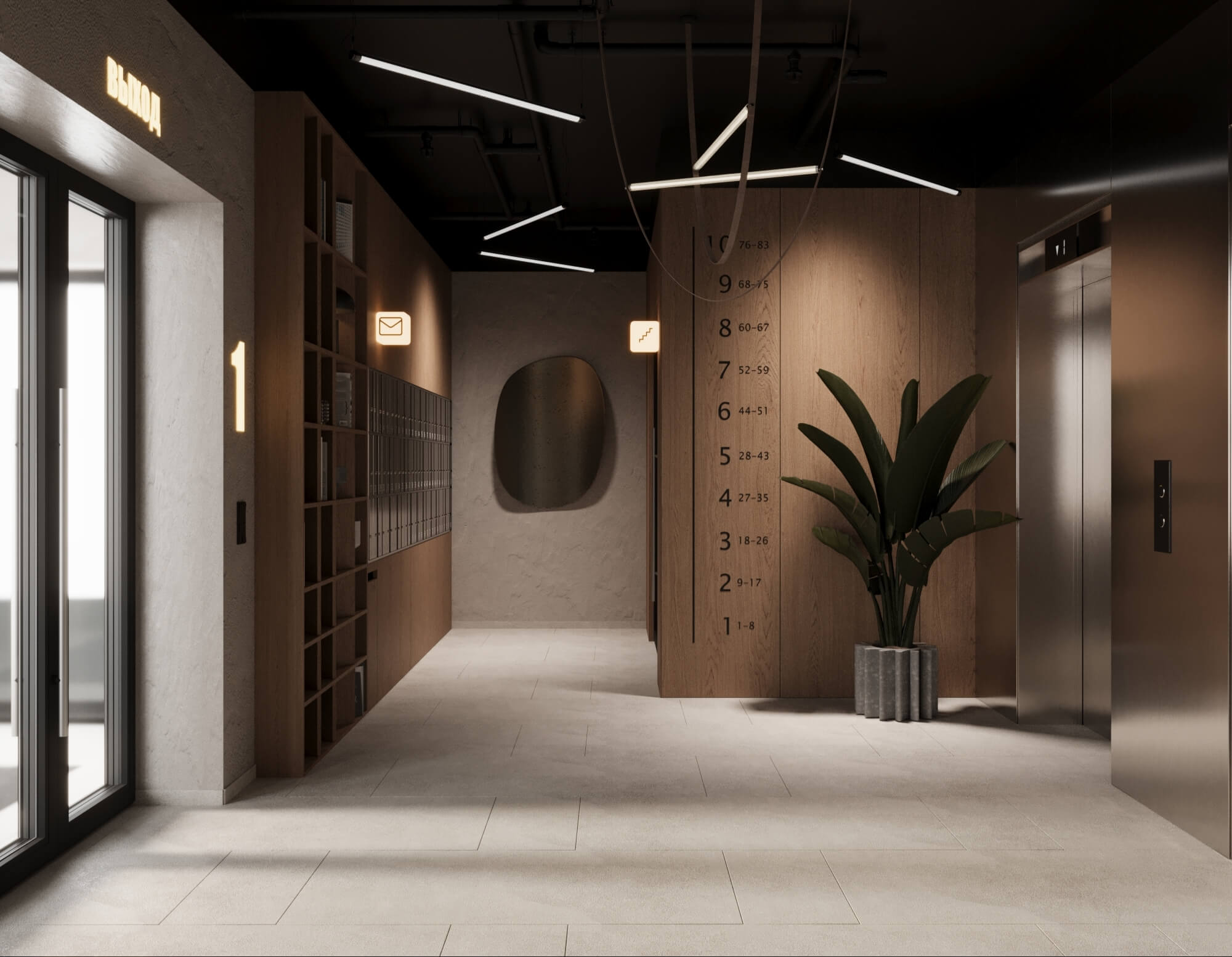 Лаконичные интерьеры, тактильные детали с натуральной текстурой дерева, теплые оттенки бежевого и коричневого цветов подчеркивают органичное сочетание комплекса с окружающей средой. Все, чтобы передать тепло дома, еще не войдя в собственную квартиру.